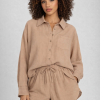 A pair of linen-blend shorts featuring a high-rise paperbag waistband. self-tie drawstring closure. and front and back patch pockets.
