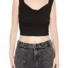 A tube top featuring a corset-style bodice. mesh overlay. sweetheart neckline. V-hem. cropped silhouette. and an exposed back zipper.