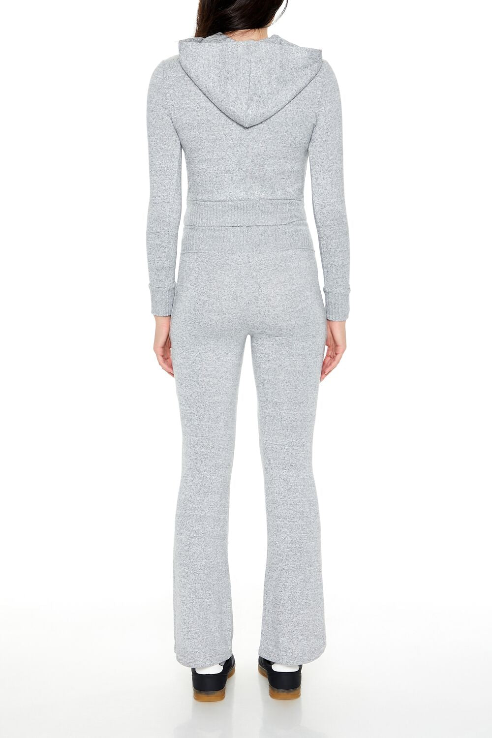 A pair of knit pants featuring ribbed trim. a mid-rise waist. and straight leg.