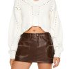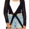 A knit hoodie featuring a drawstring hood. front patch pocket. partial open-knit netted construction. and long sleeves.