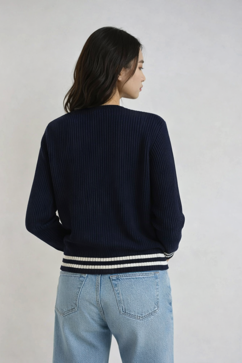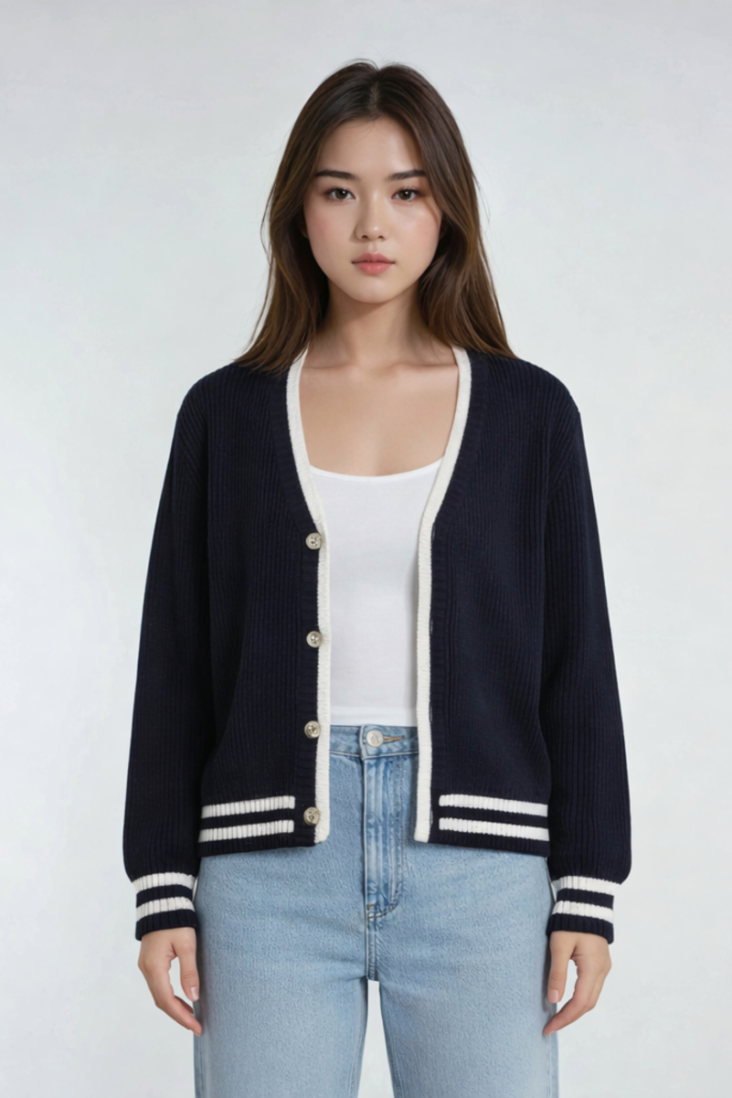 Ribbed knit cardigan sweater designed with a classic V-neckline and oversized fit
