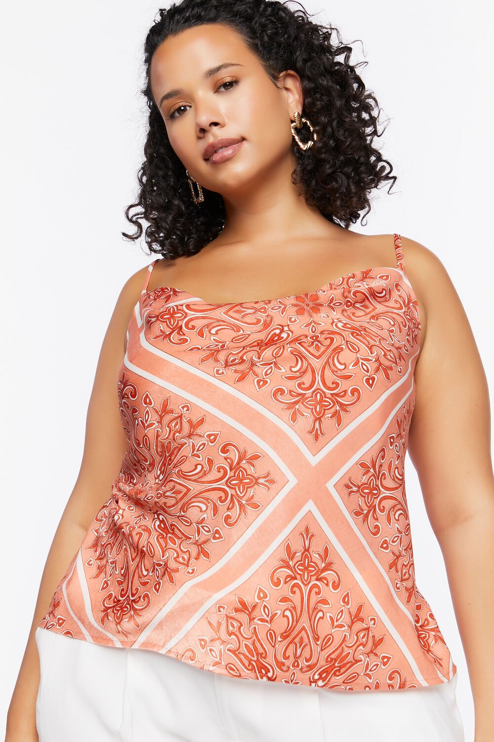 Plus Size Baroque Print Satin CamiPlus Size Baroque Print Satin Cami
