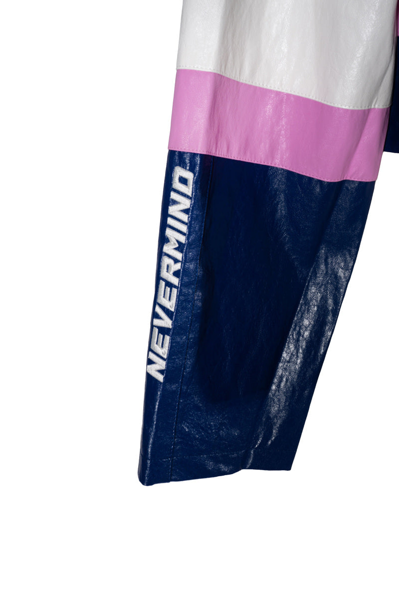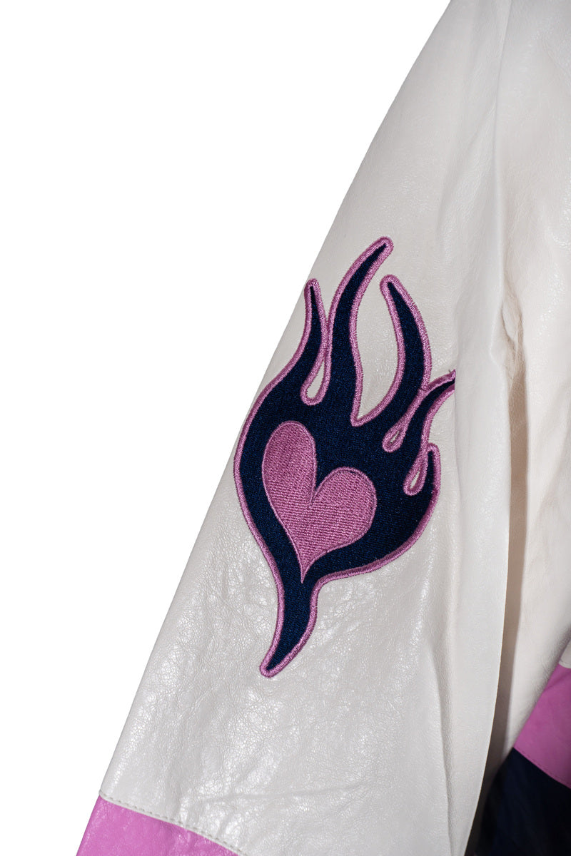Plus Size Cropped Faux Leather Colorblock Zip-Up Jacket