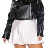 Forever 21+ – A faux leather shacket featuring contrasting faux fur trim. a basic collar button-front closures. buttoned chest flap pockets. long sleeves. and cropped hem.