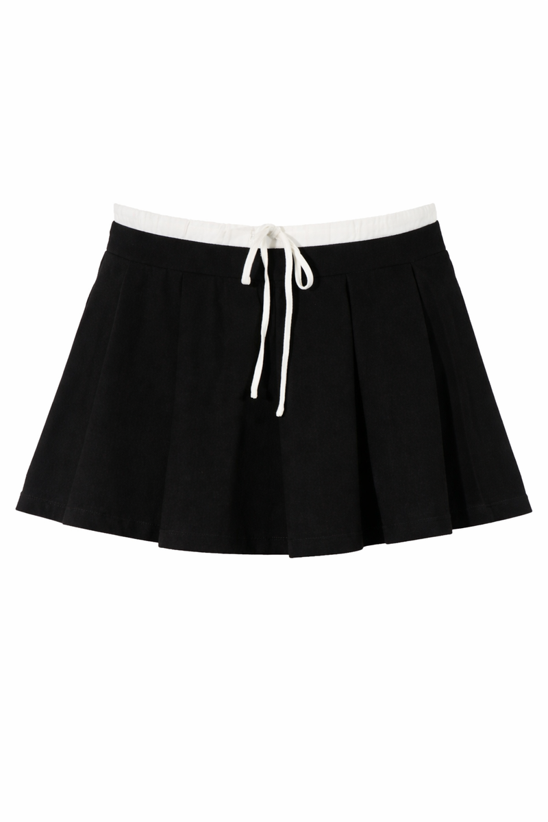 Plus Size Pleated Drawstring Mini Skort
