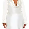 Forever 21+ – A satin maxi dress featuring an allover floral print. drawstring V-neckline with self-tie closure. chest cutout. long peasant sleeves. concealed zipper back closure. and column silhouette.