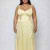 Forever 21+ – A satin slip skirt featuring a colorblock design. midi length. flare silhouette. and a concealed back zipper.