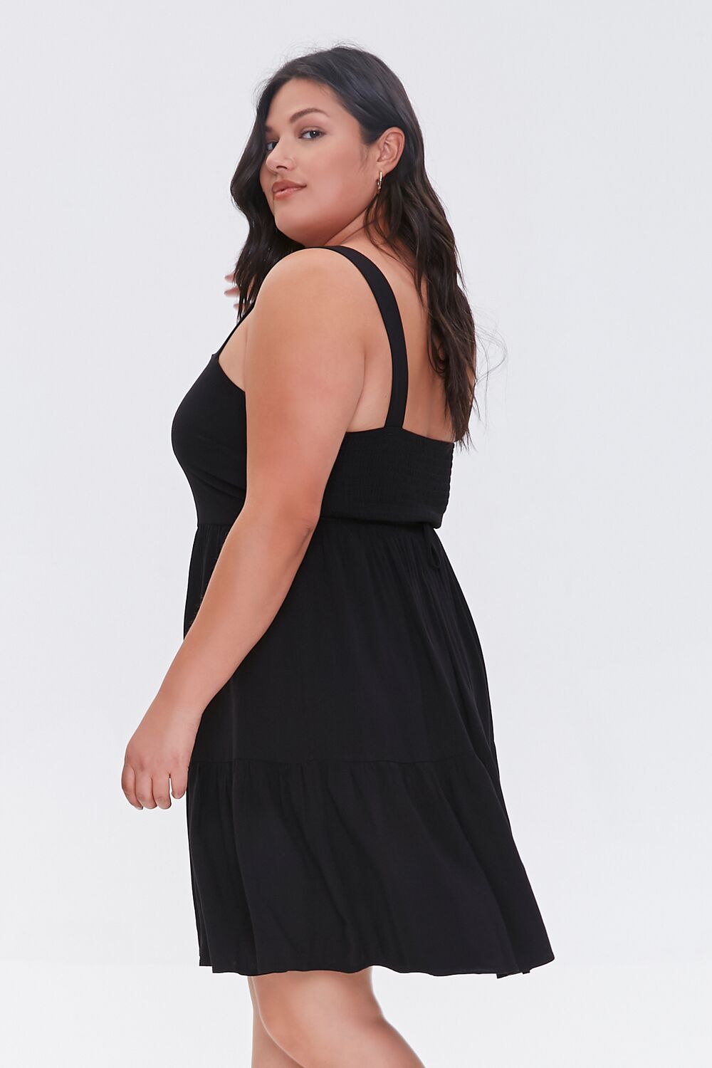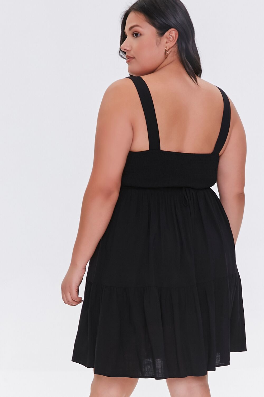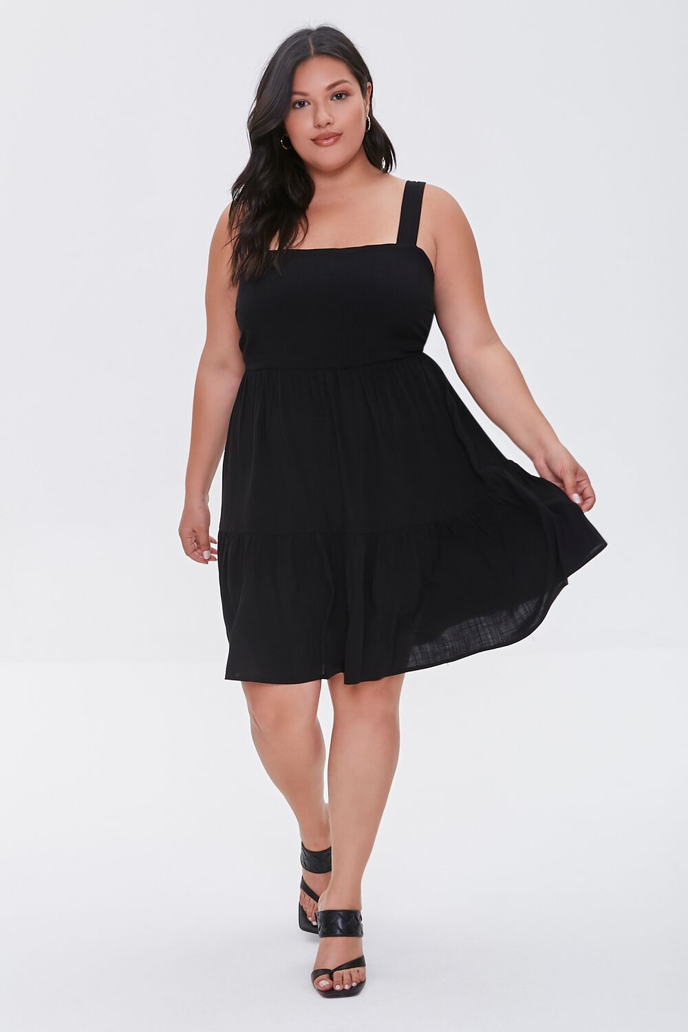 Forever 21+ – A woven dress featuring a mini length. square neckline and back. shoulder straps. and a tiered construction.