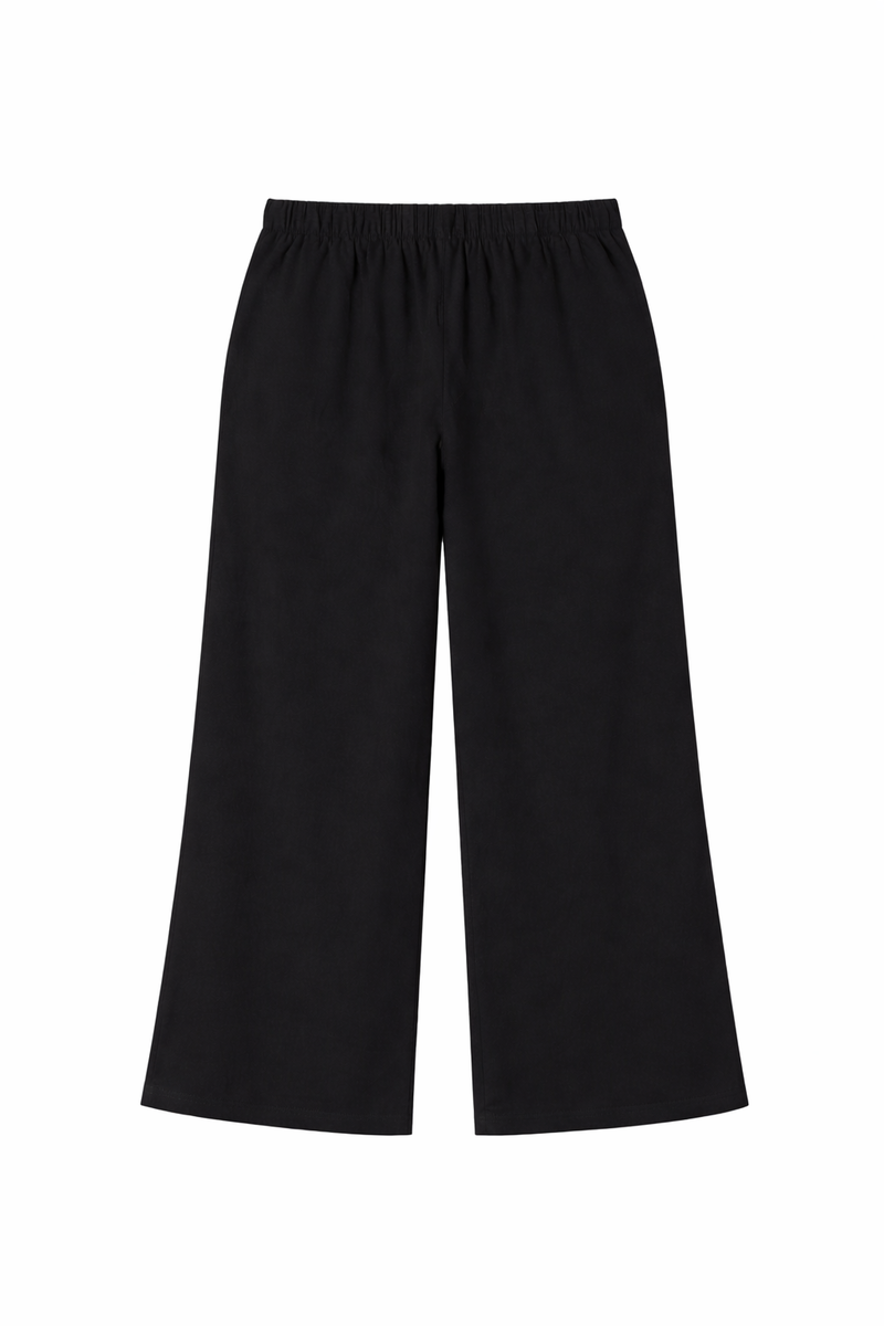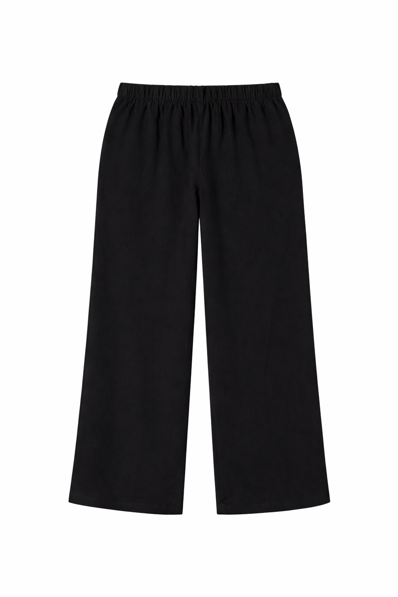 • Loose-fit wide-leg pants with a relaxed. flared silhouette