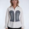 A poplin tube top featuring a flounce layer. straight-cut neckline and back. and an exposed back zipper.