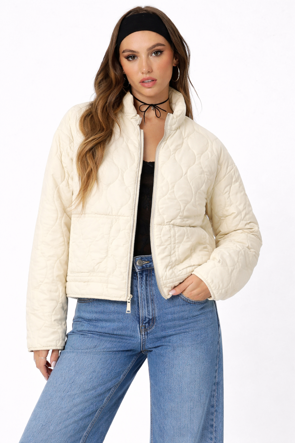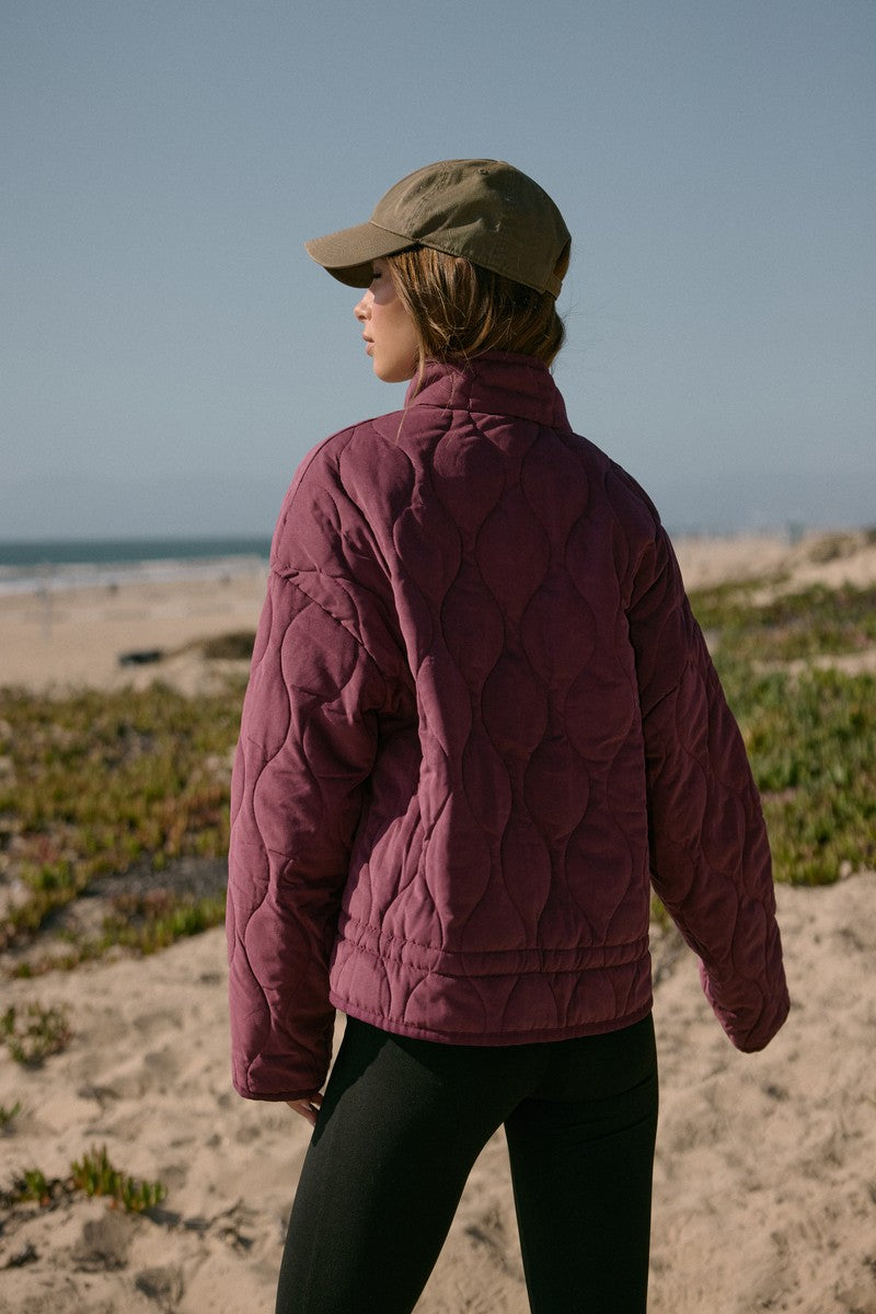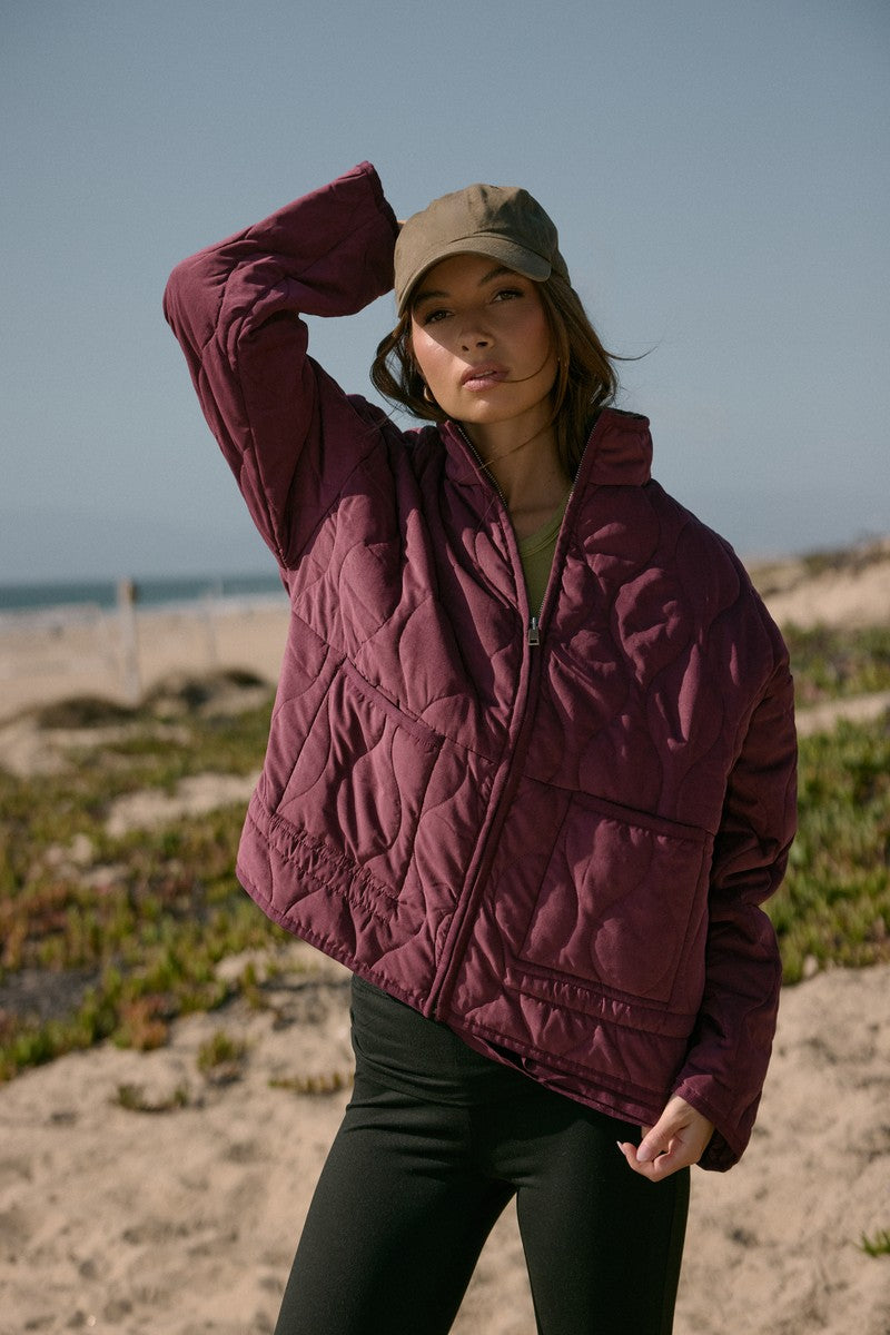 Lightweight quilted jacket with wavy stitching throughout