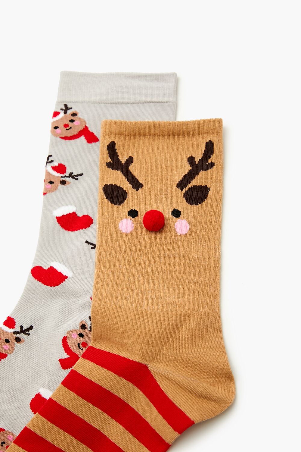 Reindeer Pom Pom Crew Socks – 2 pack