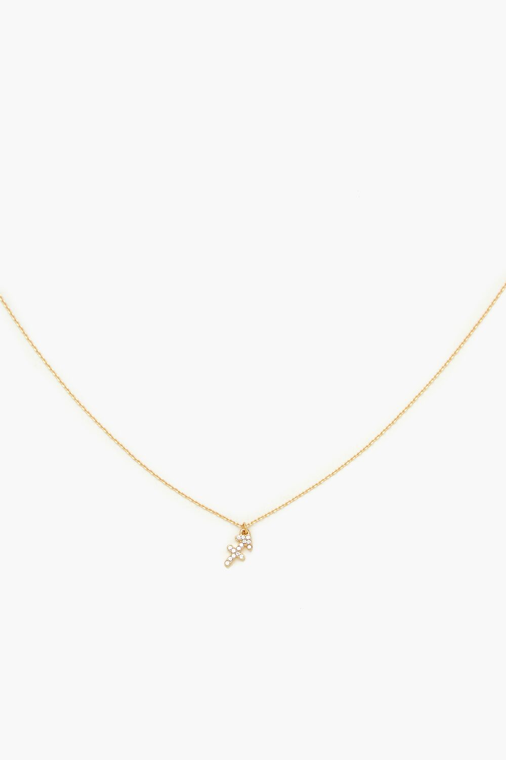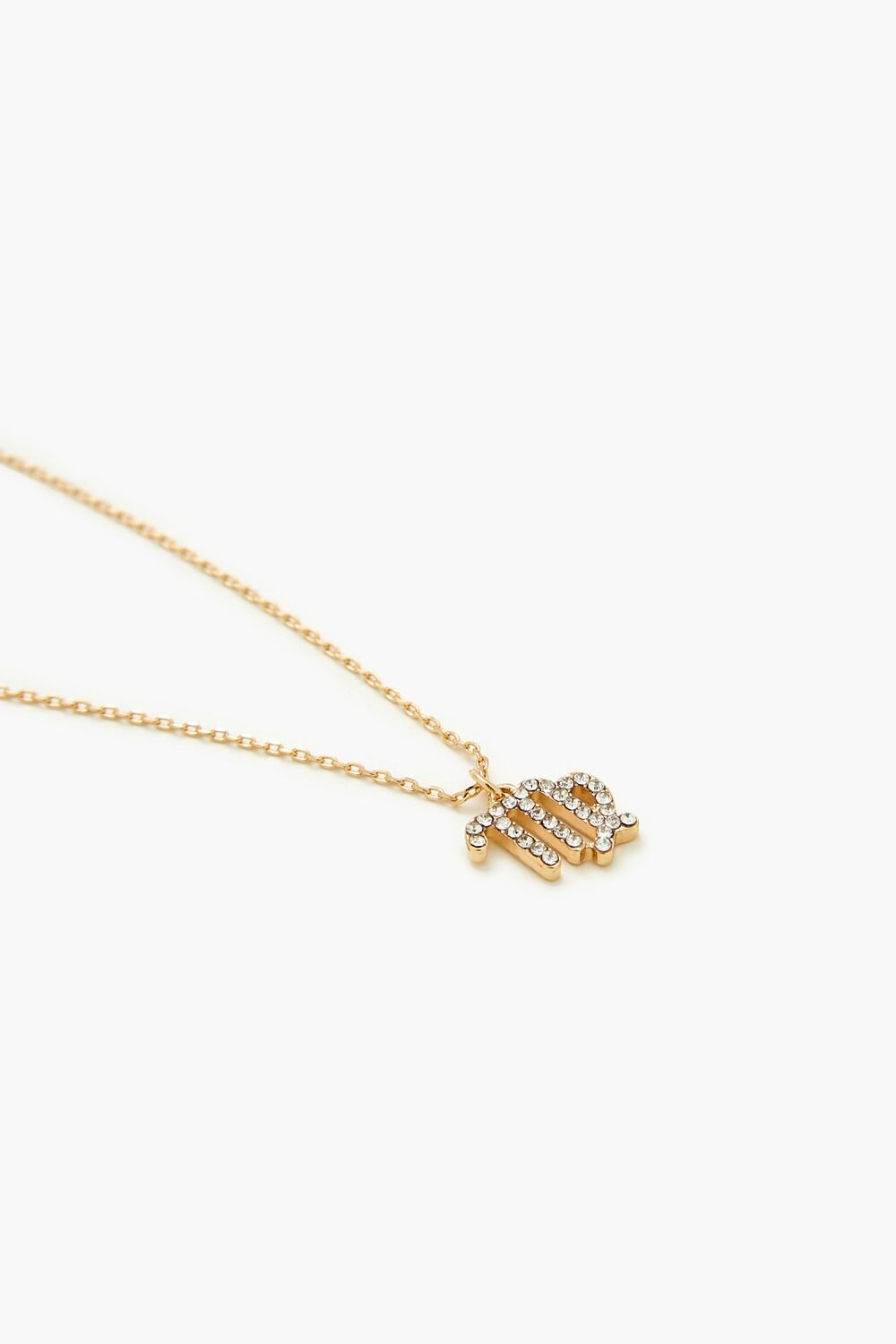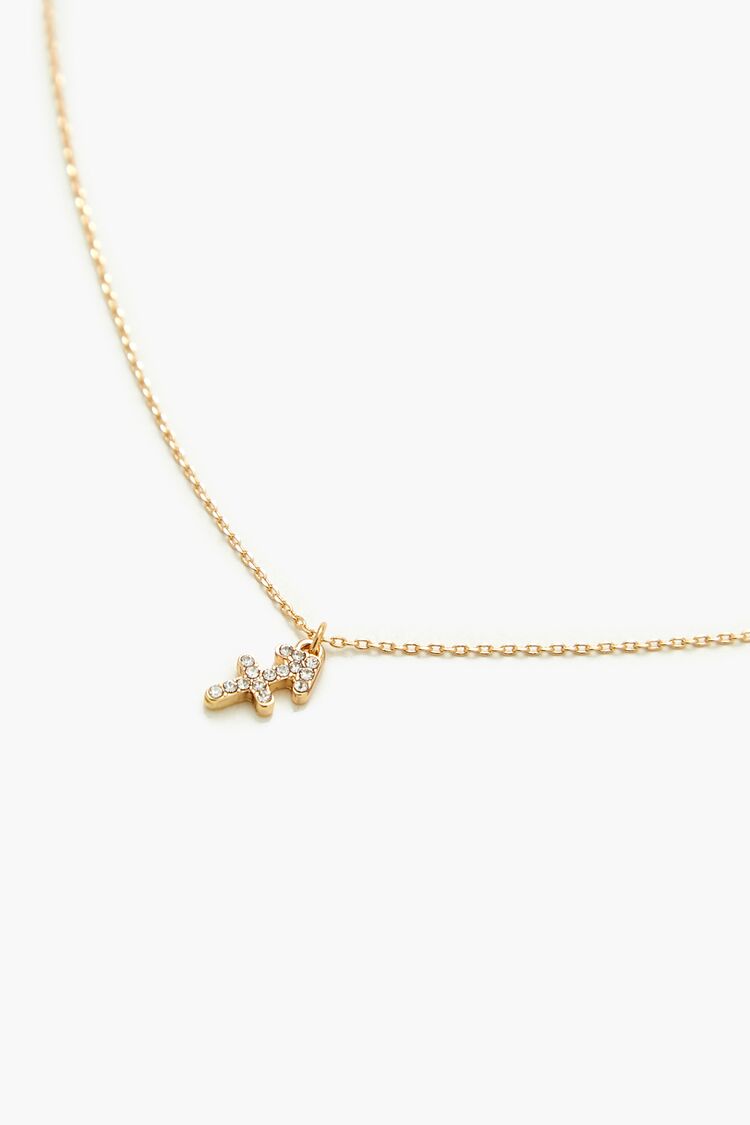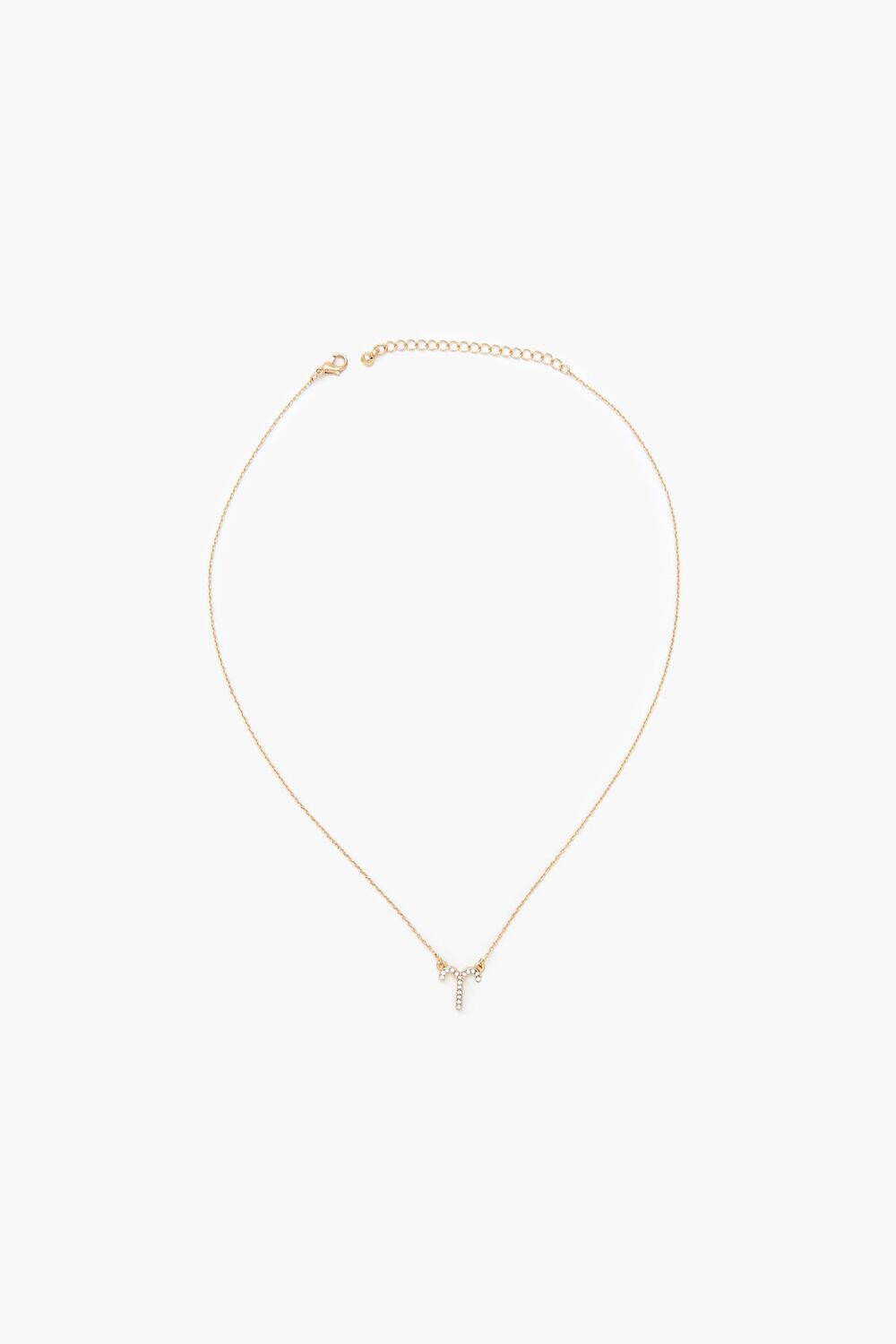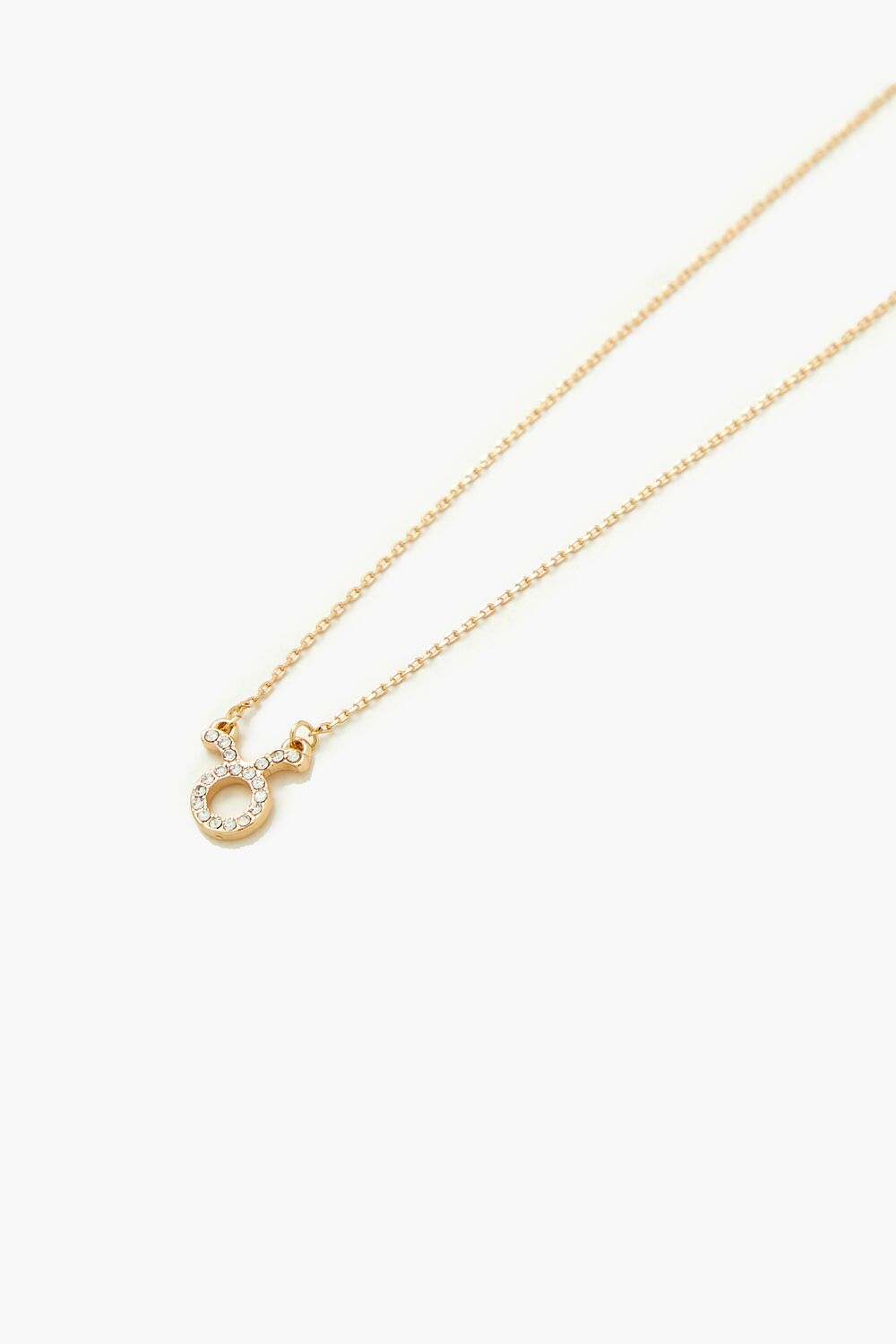 A high-polish necklace featuring a cable chain. centered zodiac sign charm. rhinestone embellishments. and lobster-clasp closure.