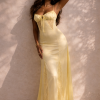 A satin bikini top featuring an allover colorblock design. heart print. sweetheart neckline. underwire. bow chest embellishment. adjustable cami straps. and straight-cut back with swan-hook closure.