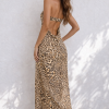 A satin bikini top featuring a two-tone design. woven lace trim. allover heart print. sweetheart neckline. bow chest embellishment. underwire. adjustable cami straps. and straight-cut back with swan-hook closure.