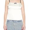 A satin tube top featuring a sweetheart neckline. curved front hem. straight-cut back. cropped silhouette. and an exposed back zipper.