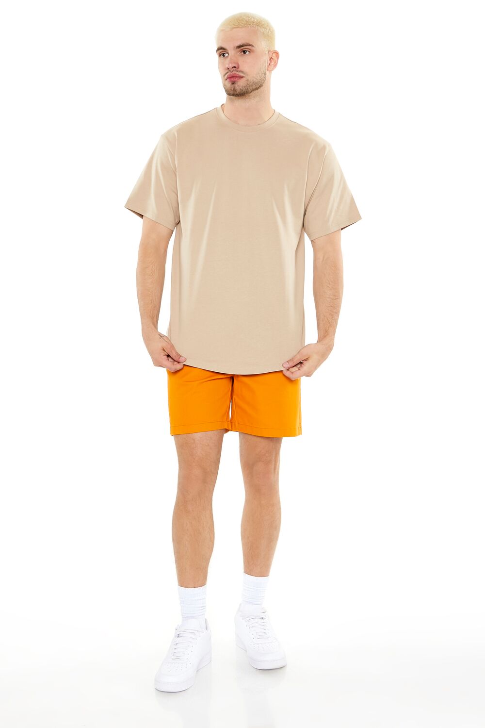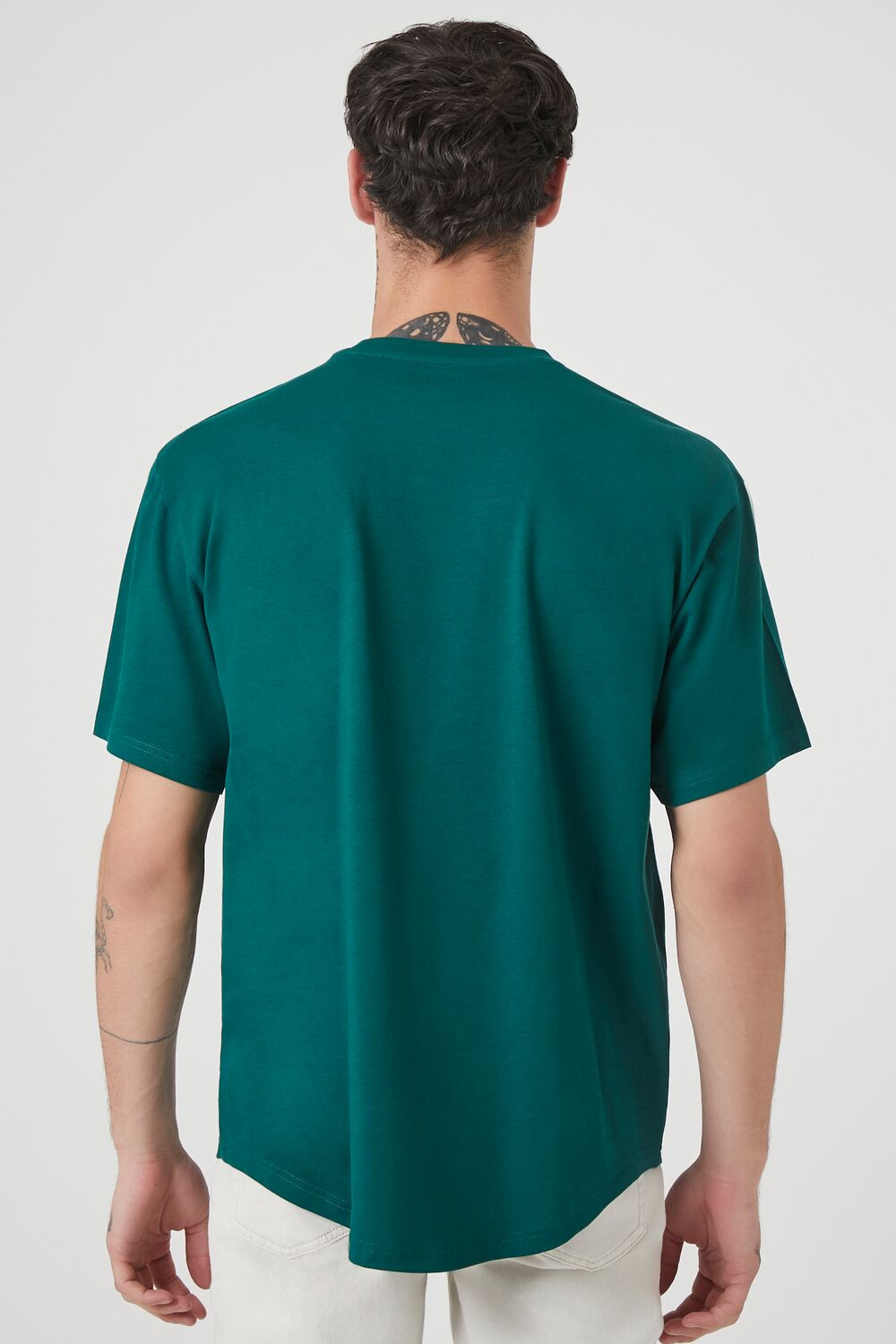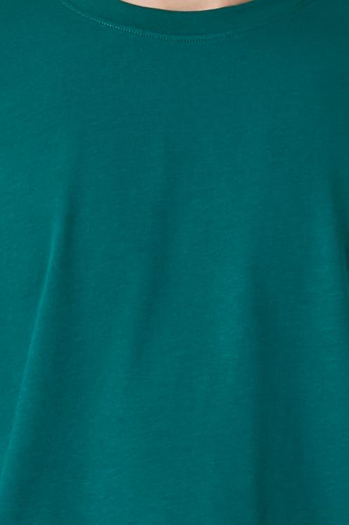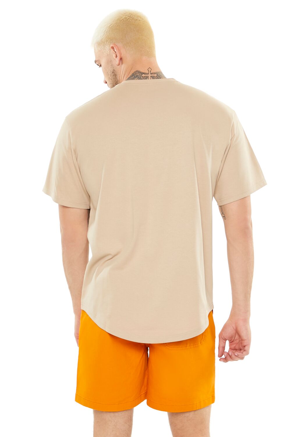A cotton tee featuring a crew neck. short sleeves. and a scoop hem.