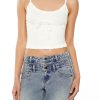 A seamless knit bralette featuring contrasting ribbon trim and bow. tonal lace trim. lettuce-edge hem. adjustable straps. allover ribbed construction. and a straight-cut neckline and back.