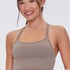 A seamless knit lingerie bodysuit featuring an allover cherry print. scoop neckline. fixed cami straps. low-cut back with strappy design. and snap-button closures.