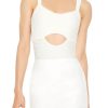 A seamless knit tank top features a square-cut neckline and back. shoulder straps. and cropped curved hem.