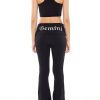 A knit crop top featuring a plunging halter neckline with button-loop closures and allover sequins.