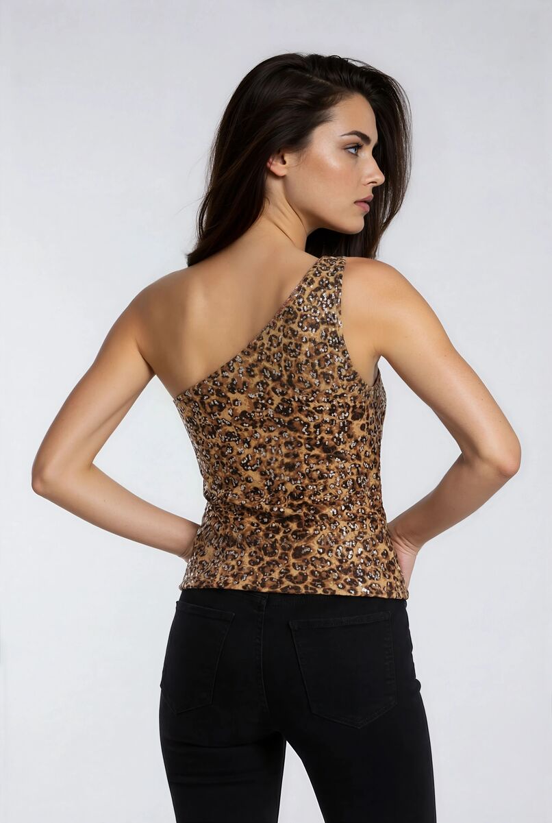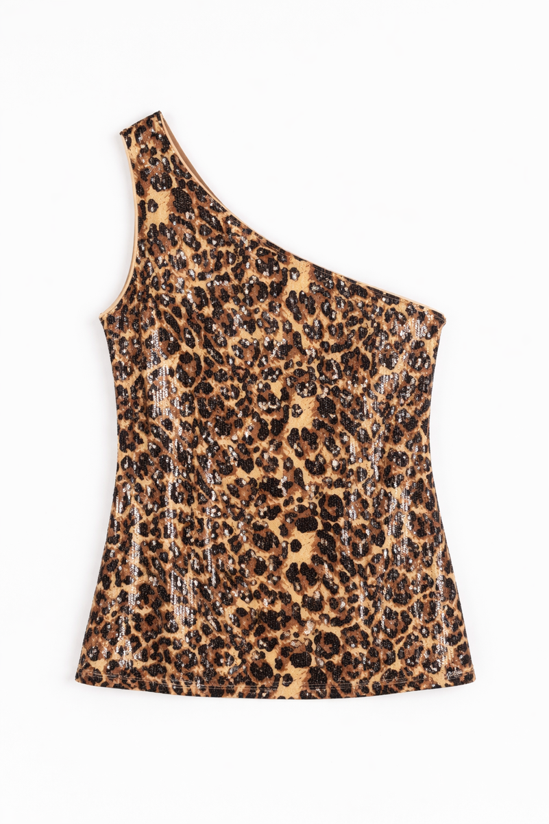 Allover leopard pattern accented with sequins for a bold. high-shine finish