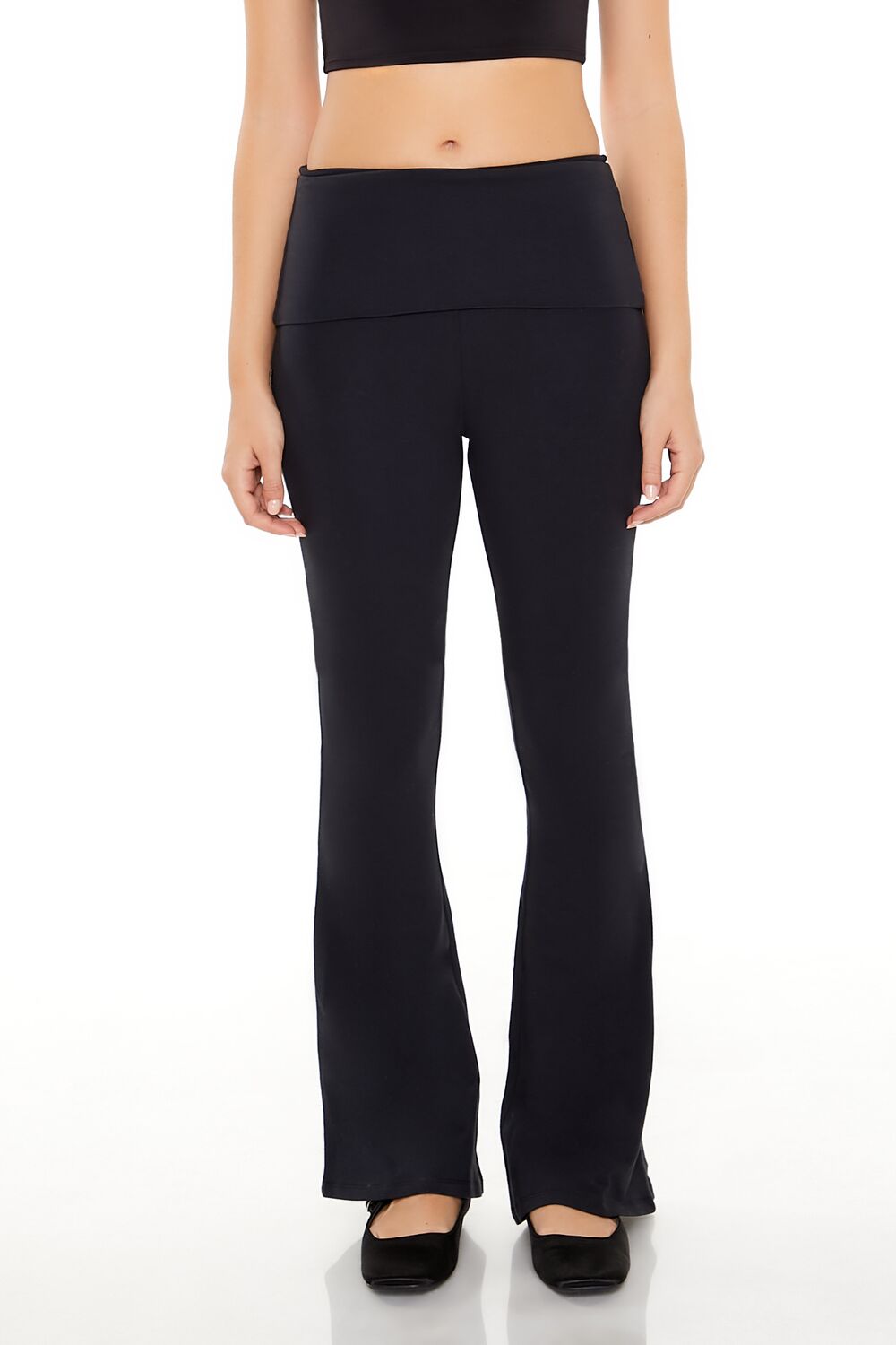 A pair of knit leggings featuring a foldover mid-rise waist. flare leg. back ‘Pisces’ text. and sequin embellishments.