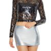 A sheer lace tank top featuring a high neckline. shoulder straps. and a cropped hem.