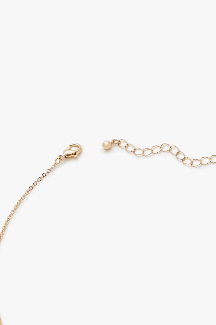 A high-polish necklace featuring a cable chain. star and dog pendant charms. rhinestone embellishments. and lobster-clasp closure.