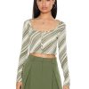 A ribbed knit bodysuit featuring an allover striped pattern. fixed cami straps. and a straight-cut neckline and back.
