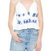 A knit dress featuring an allover tie-dye striped pattern. round neckline. sleeveless cut. asymmetrical hem. mini length. and bodycon silhouette.