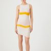 A woven linen-blend crop top featuring contrasting trim. shoulder straps. a V-neckline. self-tie front closure. and a square-cut back.