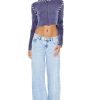 A fleece pullover featuring metallic ‘What The Elf’ text. dropped long sleeves. and a crew neck.